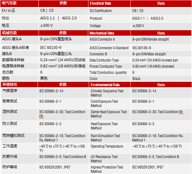 •滿足AISG和(hé)RoHS标準。
